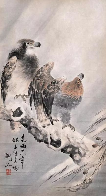 高剑父(1879-1951), 中国近现代国画家、美术教育家、岭南画派创始人之一。汉族广府人,名仑,字剑父,后以字行,。1879 年10月12日生于广东省广州府番禺县(现广州市番禺南村员岗乡),1951 年6月22日卒于澳门。与陈树人、高奇峰一起致力于中国画改革,后人称岭南画派。