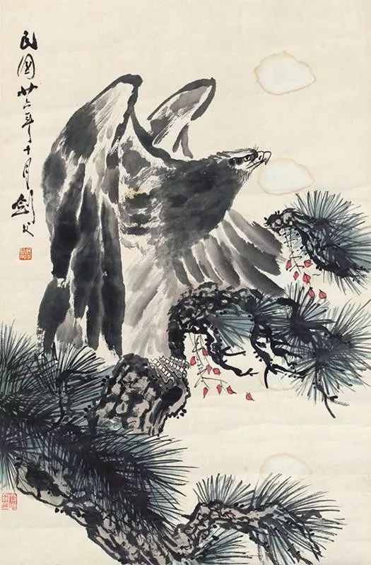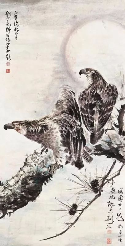 高剑父(1879-1951), 中国近现代国画家、美术教育家、岭南画派创始人之一。汉族广府人,名仑,字剑父,后以字行,。1879 年10月12日生于广东省广州府番禺县(现广州市番禺南村员岗乡),1951 年6月22日卒于澳门。与陈树人、高奇峰一起致力于中国画改革,后人称岭南画派。